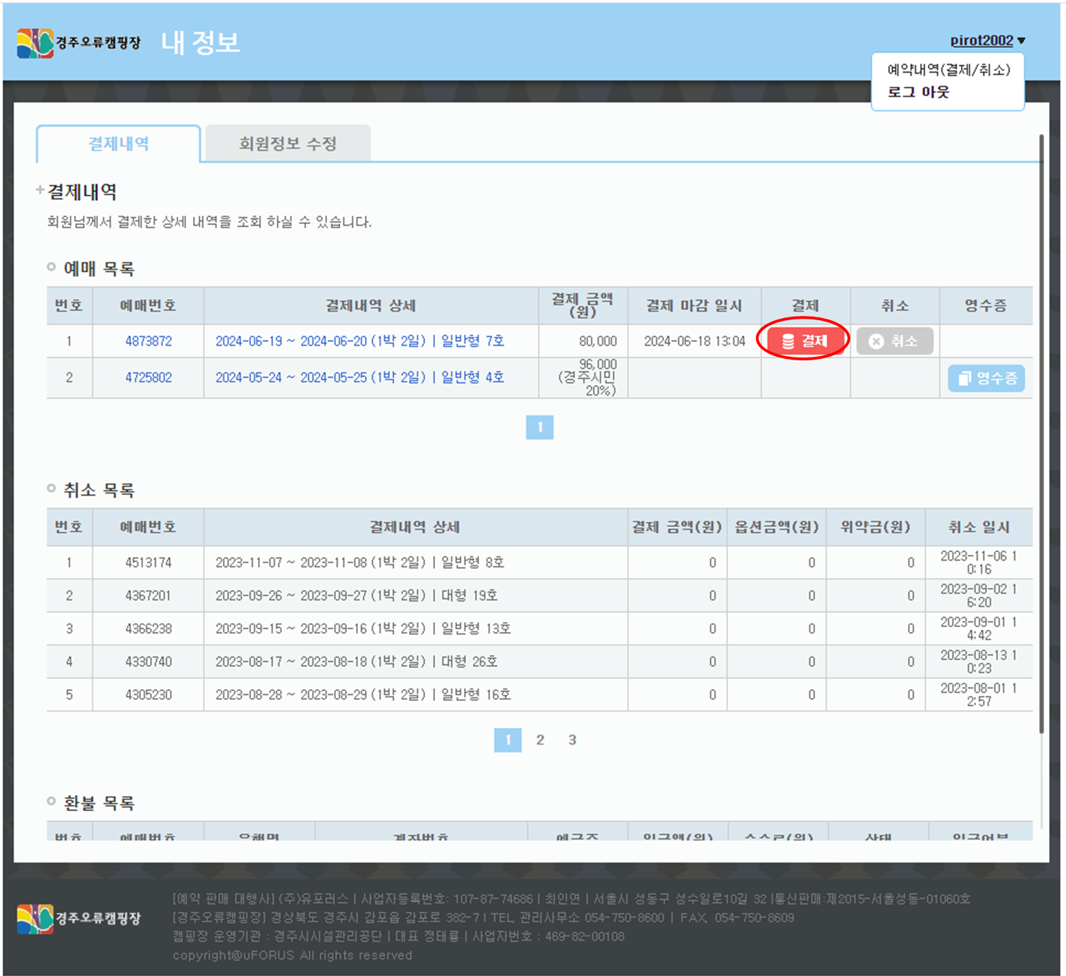 만약 취소를 하신다면 결제 옆에 취소 버튼을 클릭하시면 됩니다.