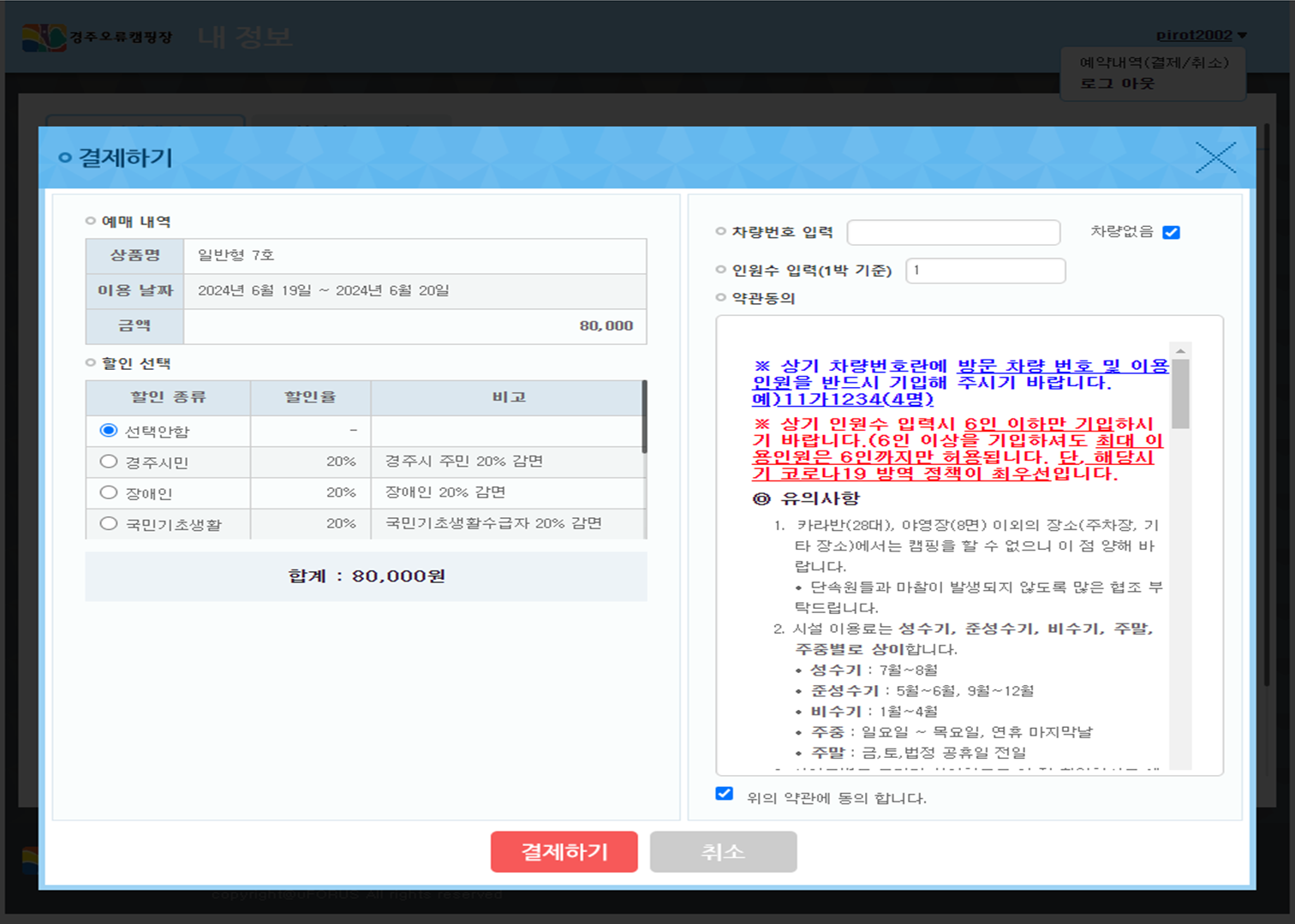 오류캠핑장 홈페이지에서 예약하는 방법을 안내드립니다.