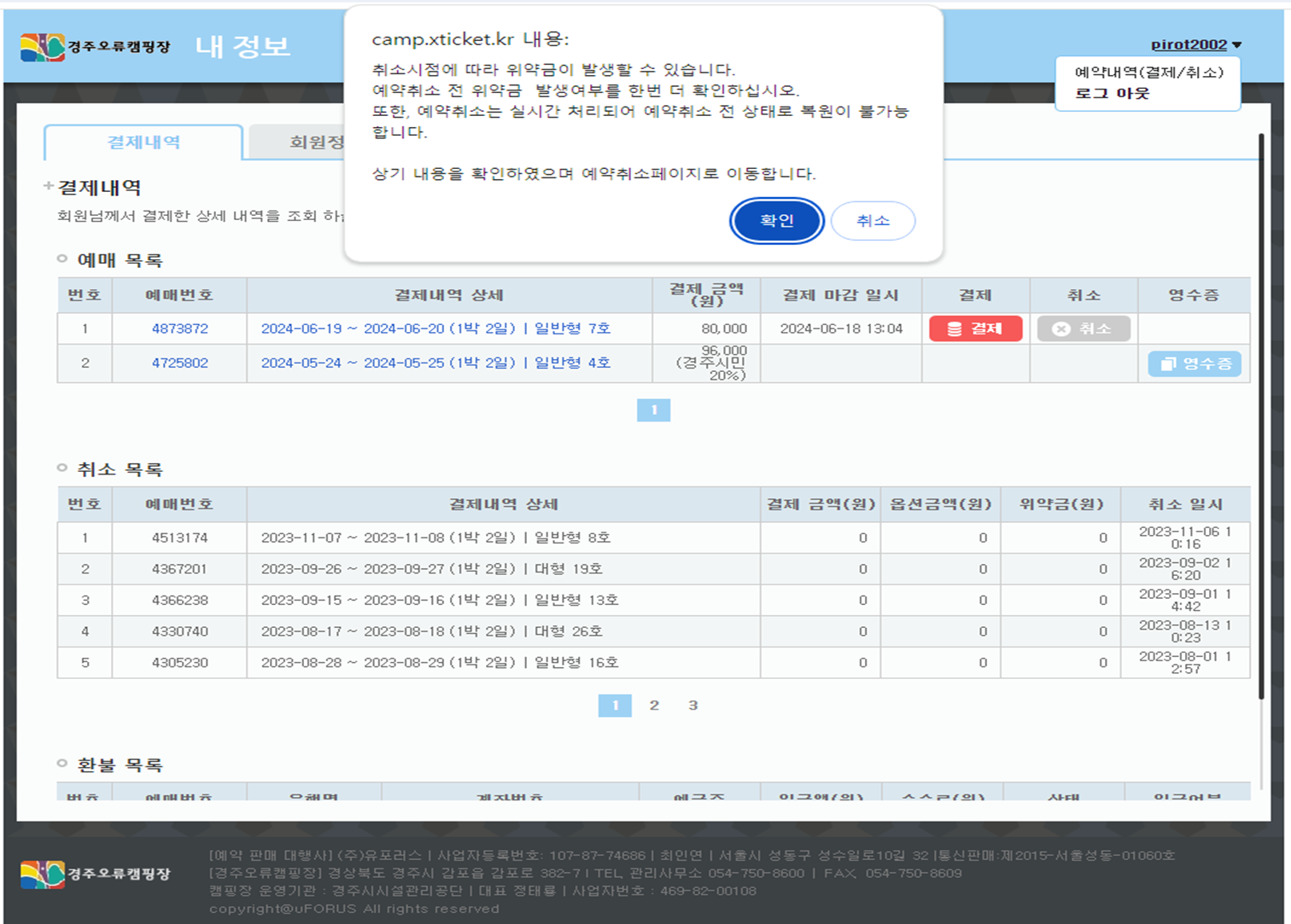 성수기 때 취소를 하면 위약금이 크게 발생하니 심사숙고하시기 바랍니다.